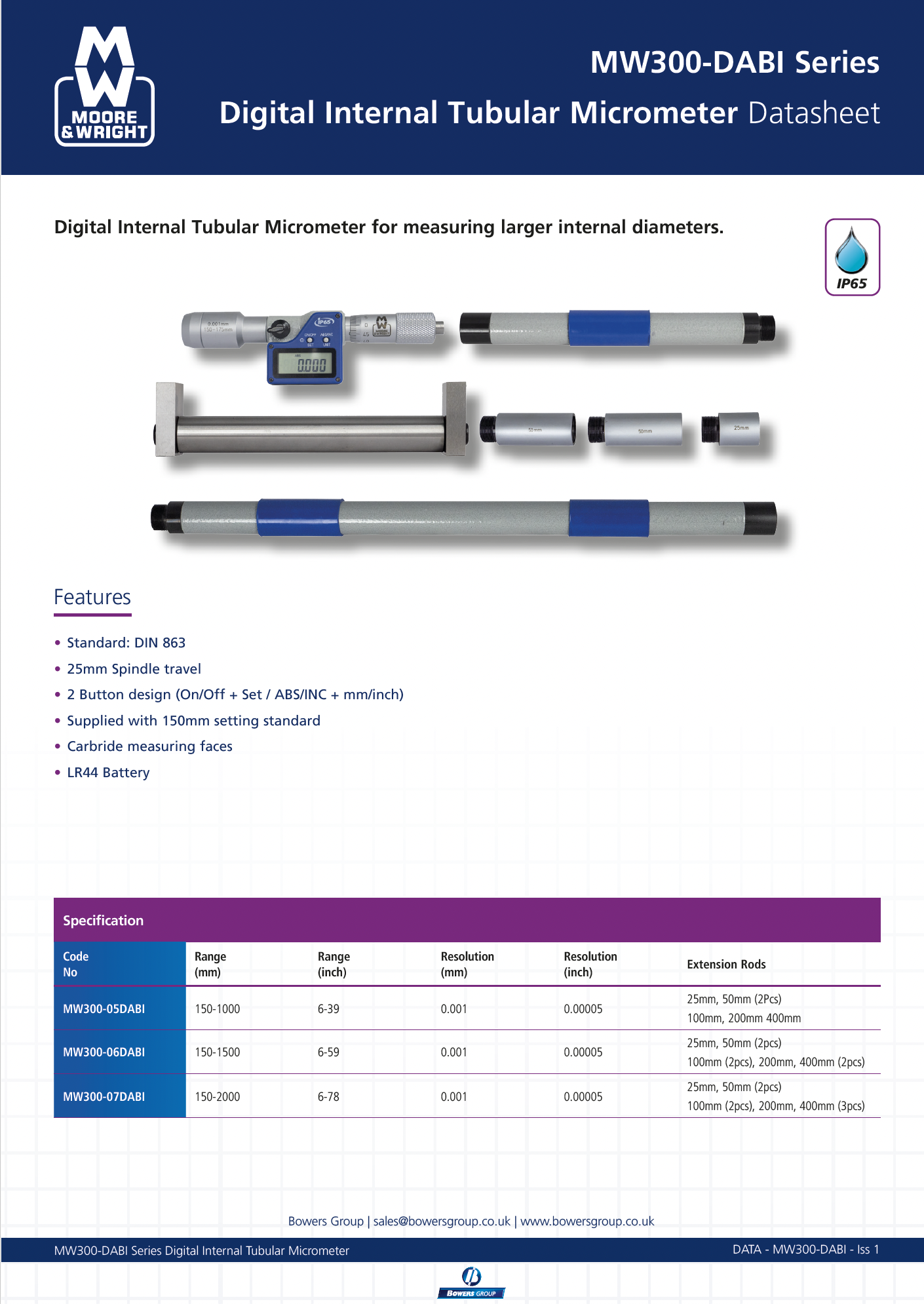150-1000mm Digital Internal Micrometer by Moore & Wright.