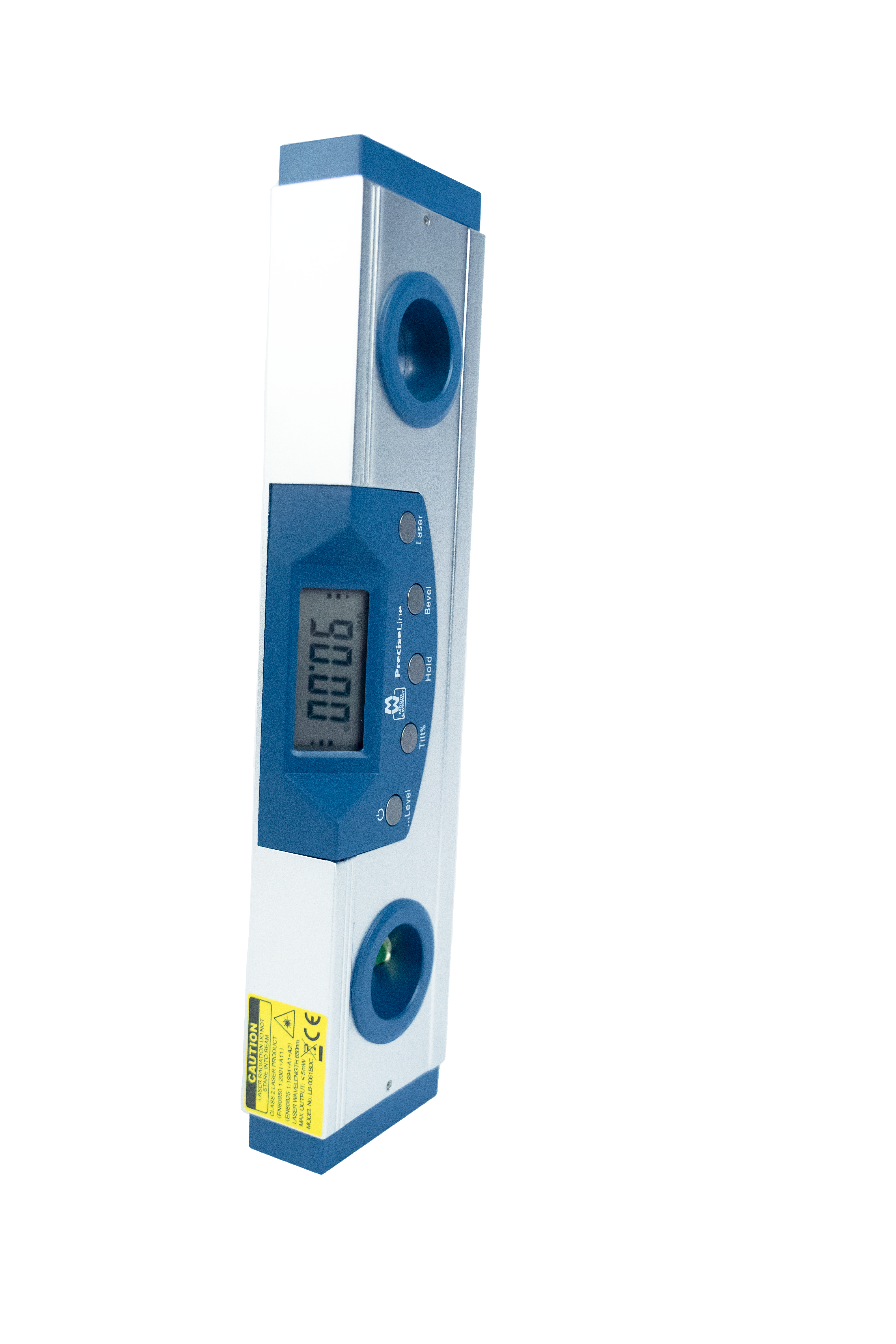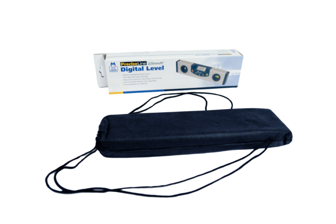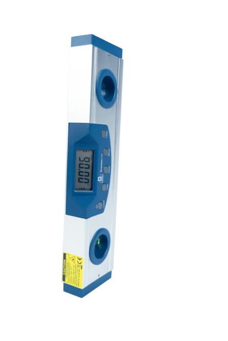 The class 3B cross hair laser pointer is mounted at one end of the level, with an on/off switch located on the front panel. The digital level comes complete with a carry case and one 9v battery.