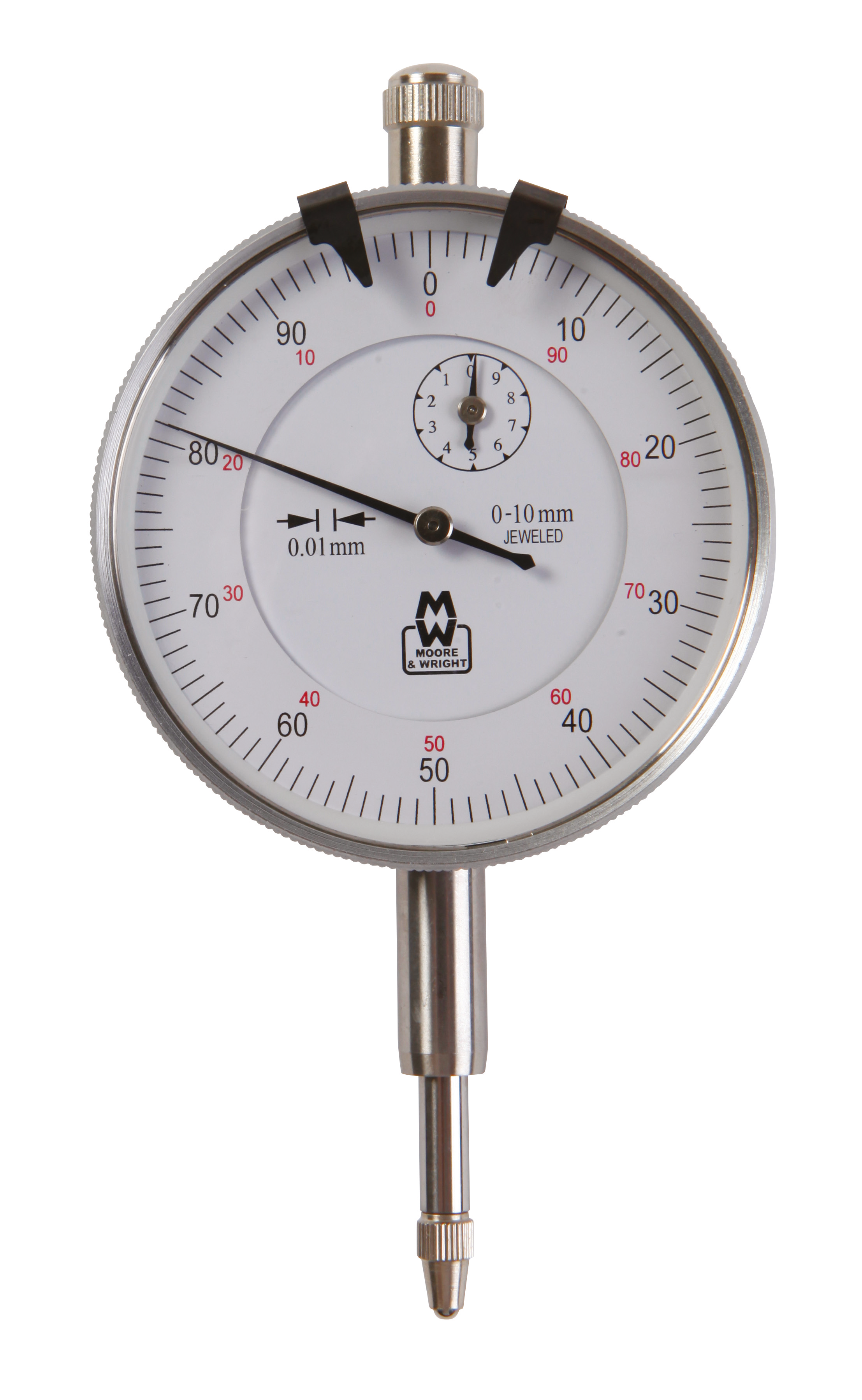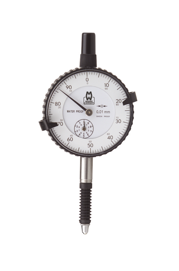 Featuring a satin chromed body and a tungsten carbide contact point, the Moore & Wright 400 series dial indicator is shock proof with an adjustable bezel with stop screw.